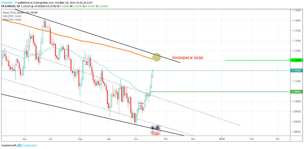 Today’s closing price is very important, as we can see the daily candle is forming an ‘evening star’ pattern. Evening star is a trend reversal, so possibly we will get a delay on Brexit and Parliament won’t accept the draft.